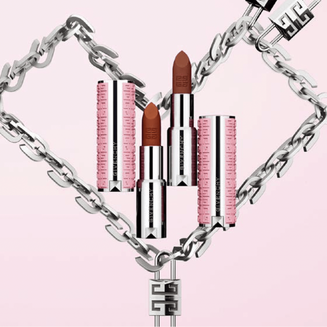 Dans cet univers couture, Givenchy inspire une vision entre force et sensualité. Un contraste entre douceur chromatique et tension matérielle donne naissance à une esthétique rock et sophistiquée. Le produit n’est plus un objet de beauté, il devient un objet de désir. Un essentiel qu’on porte autant qu’on montre.