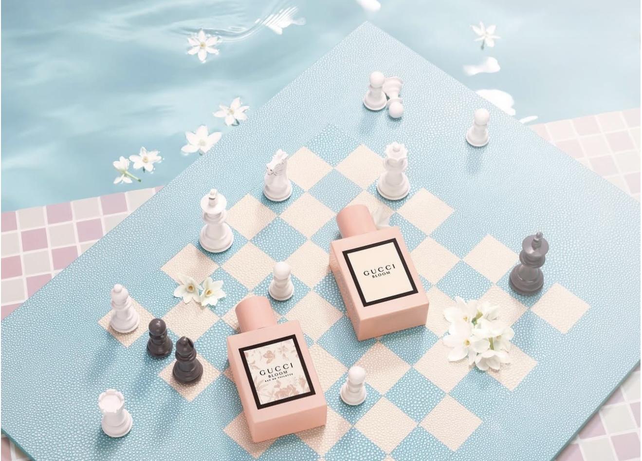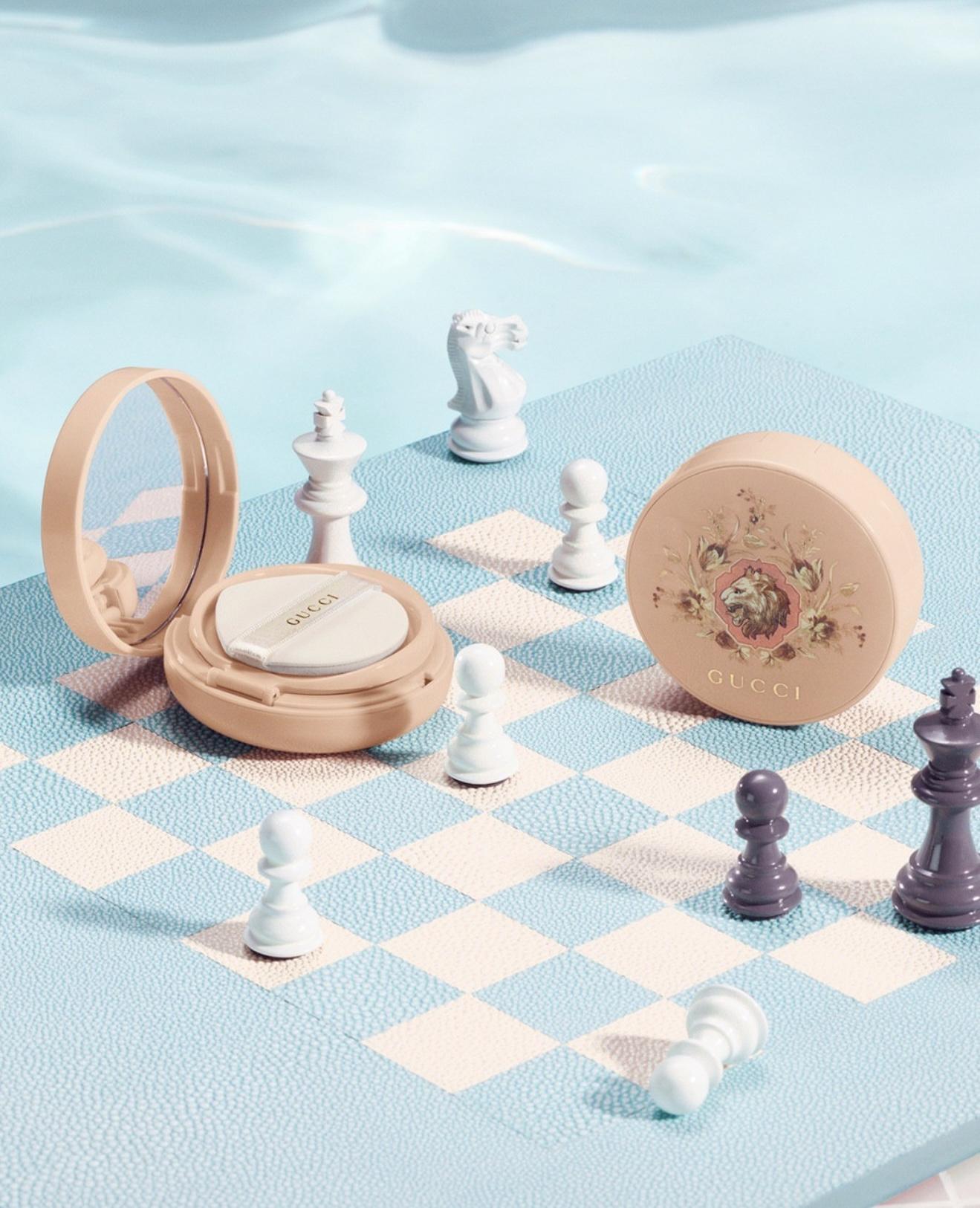 Gucci Beauty s’invite au bord de l’eau. Les produits iconiques deviennent les acteurs de l’été. Une série d’images à mi-chemin entre la mise en scène onirique et la nature morte contemporaine. L’enjeu : révéler la texture, célébrer l’objet, mais toujours raconter une saison. Ce n’est pas une simple campagne estivale. C’est une parenthèse légère, un flacon oublié sur le rebord de la piscine, un pion qui attend le prochain coup. Une pause couleur Gucci.
